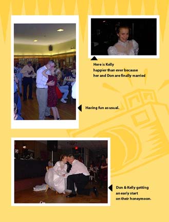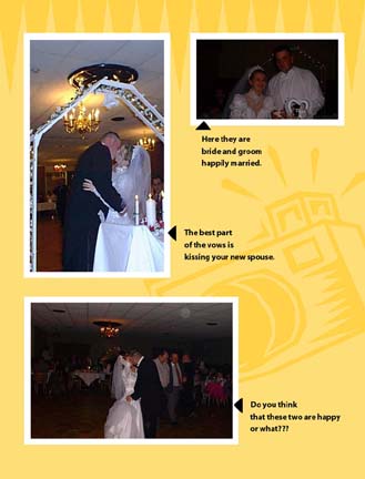 The following examples are pictures taken with my digital camera at a friends wedding, which I turned into a wedding album that they can always cherish. These are just a couple of pages from the album: